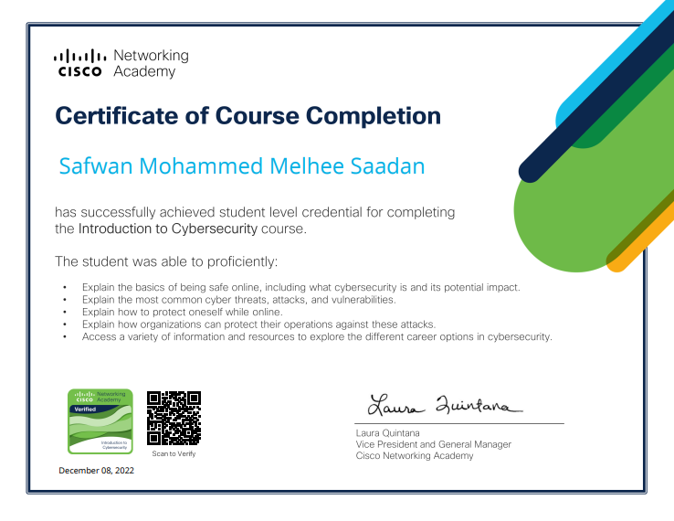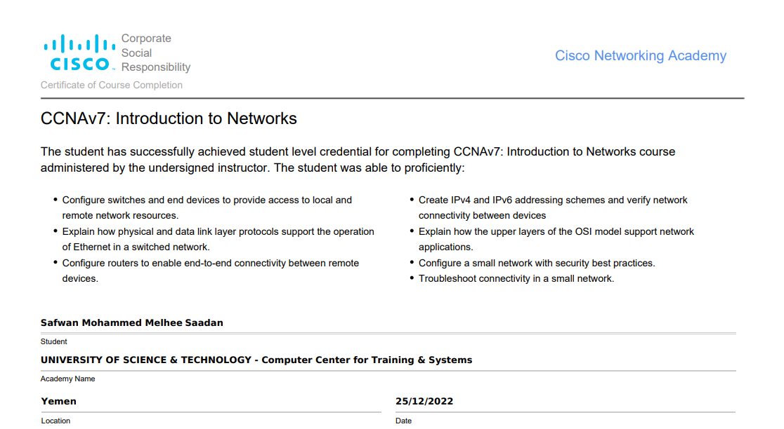 - حاصل على أكثر من 76 شارة علمية من أكادمية سيسكو