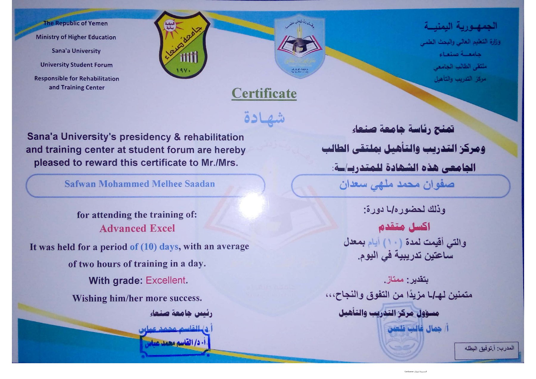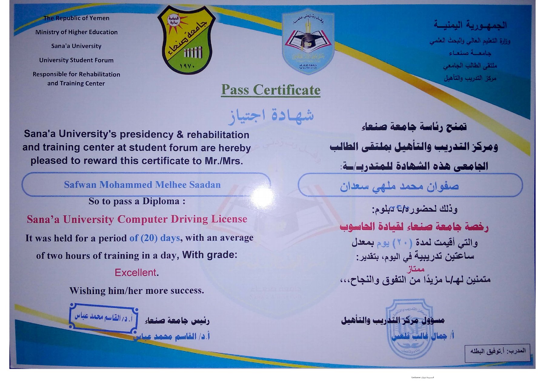 - حاصل على أكثر من 17 شهادة في مجال الحاسوب